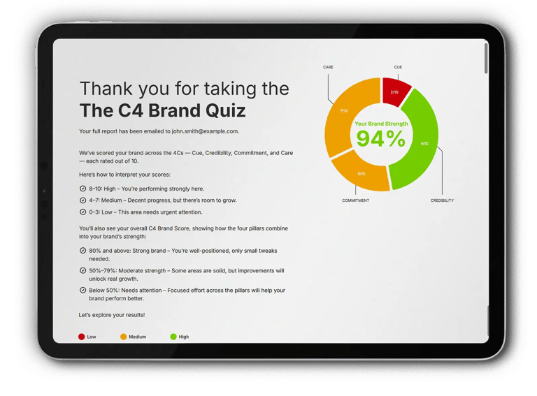 Find out in a few minutes how your brand stacks up across the 4Cs, through our NEW C4 Brand Quiz.